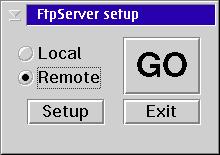 Remote Configuration with INIServeIn order to be able to do a remote configuration you need a special program, INIServe, that must be started on the same PC as FtpServer is running on. INIServe is a freeware utility that can be downloaded from the homepage of Peter Moylan (http://eepjm.newcastle.edu.au/os2).The current version is iniser07.zip. This zip file contains two other zip files server.zip and client.zip. Unzip server.zip and client.zip in the FtpServer directory of the machine you want to configure remotely. This will place four files iniserve.exe, iniserve.inf, inied.exe, inied.ico as well as some other files into the FtpServer directory. Start iniserve.exe and kill it immediately by pressing Ctrl-C. You need to do this to create the file INISERVE.INI. By default there is no password defined to start the remote configuration. Left alone, this is a high security risk as anyone equipped with the FtpServer software could define anything he wants on your PC e.g. he could create a new user with manager privileges. So the first thing you should do is define a password. You can define a password by adding a key Password in the file INISERVE.INI and define the desired password as the key value. To accomplish this you have two choices : you can use inied which is a small ini file editor, or you can use whatever ini editor you like (I prefer UniMaint). After you have defined the password you can restart iniserve.exe. The INISERVE.INI which contains the password you've defined is now loaded. You can place iniserve.exe in a startup script, the startup folder or in tcpstart.cmd to start it automatically when you boot your PC you use as FtpServer. Now you can start the remote configuration on another PC you have FtpServer installed on. As with the local configuration, start it by double clicking the Setup icon. Activate the remote checkbox and push the Setup button.