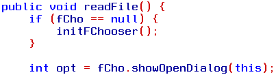 but now we have to. Since it is null we are sent to initFChooser, another new method. Otherwise we would continue with the last line, but let