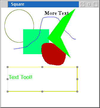 You'll notice there is no canvas to start with. That's not its purpose in life. If you feel like drawing, simply go to "File->New" and you'll be presented with a dialog to setup a blank canvas with which you can start drawing (but be sure to set the drawing colour first, or you'll get nothing. By default it seems to be white, the same as background colour). The drawing tools are sort of like vector-based applications. You can re-size, re-shape and move your objects all you want. But as soon as you use the left-click pop-up menu and select "Draw", the object is painted on like any bitmap paint program.